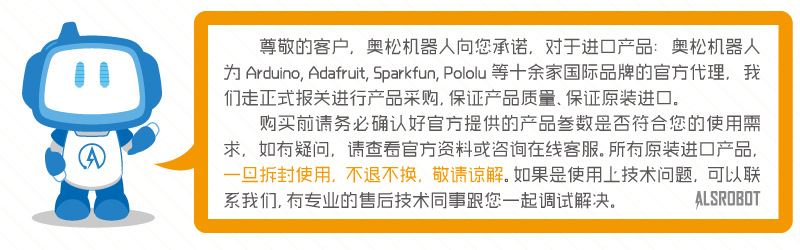 通知:奧松機器人科技有限公司於2013年正式成為美國Pololu官方授權中國區域代理商,此款產品為國內首發,火熱搶購中,由於數量有限,拍下時請咨詢客服是否有庫存。