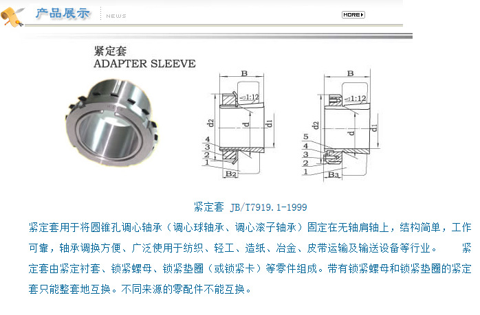 錐形襯套材料的抗拉強度不應低於412MPa,屈服程度不應低於250MPa,鎖緊螺母材料的抗拉強度不應低於350MPa,鎖緊墊圈和鎖緊卡材料的抗拉強度不應低於300MPa,以上均可采用符合GB/T699-1999規定的優質碳素結構鋼製造,也可采用滿足性能要求的其他材料製造。