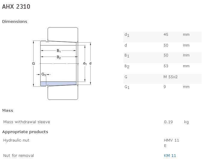 此處列出的退卸套屬於 SKF 的基本產品。 如需更大尺寸的退卸套(內徑 ≥ 1060 mm),請聯系 客服