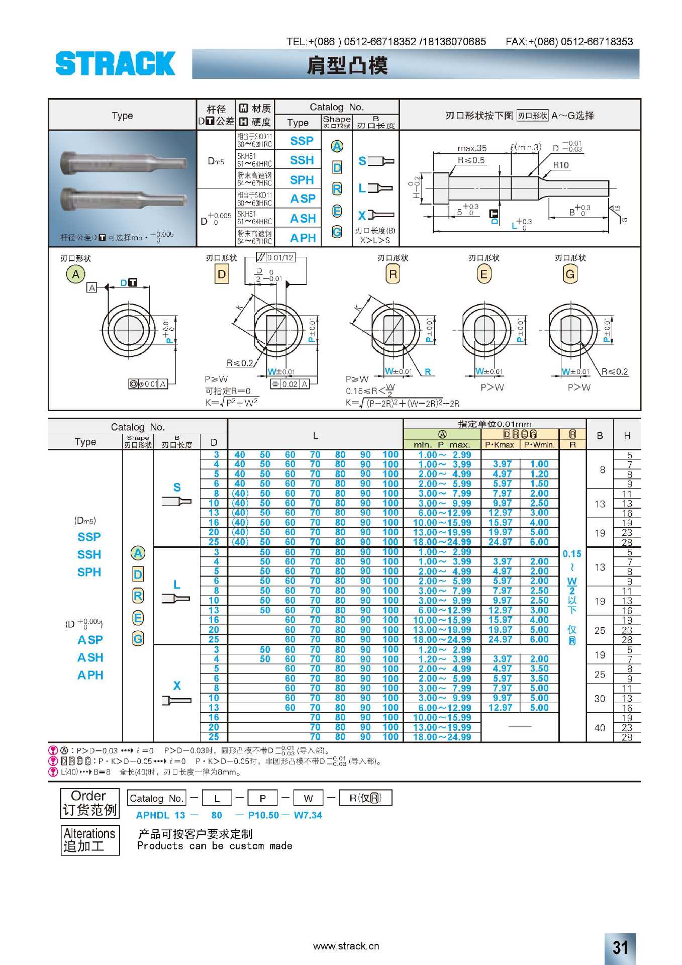 | 型號 | SSP SSH SPH ASP ASH APH | 適用模具類型 | 沖壓模 | 產品別名 | 凸模 |