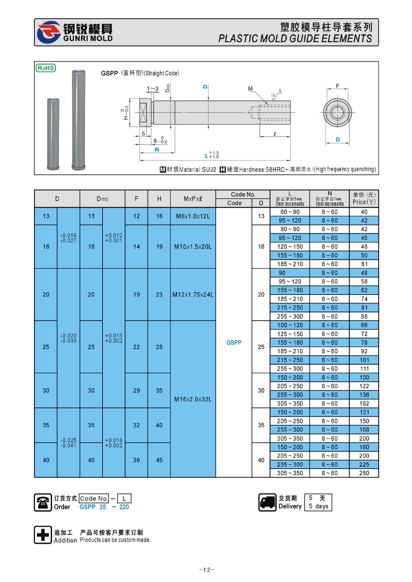 | 型號 | GSPP,GSPPJ | 適用模具類型 | 塑料模 | 產品別名 | 導柱導套 |