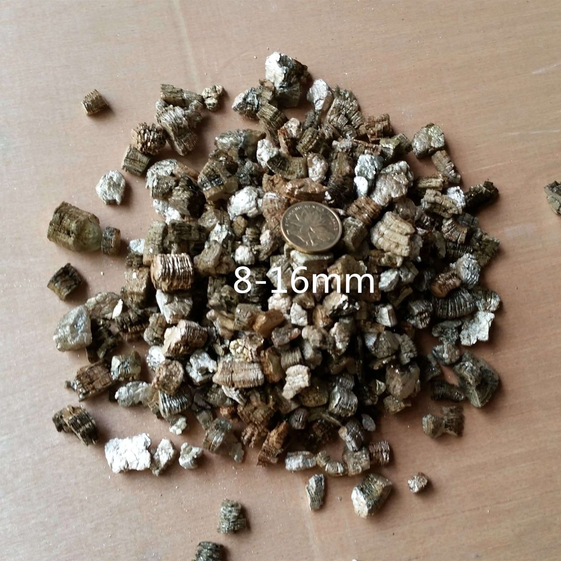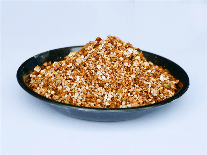 生蛭石片經過高溫焙燒後,其體積能迅速膨脹數倍至數十倍,體積膨脹後的蛭石就叫膨脹蛭石, 其是層狀結構,層間含有結晶水,容重在50-200kg/m3,熱導率小,是良好的隔熱材料。質量良好的膨脹蛭石,最高使用溫度可達1100℃。此外,膨脹蛭石具有良好的電絕緣性。膨脹蛭石廣泛用於絕熱材料、防火材料、育苗、種花、種樹、摩擦材料、密封材料、電絕緣材料、塗料、板材、油漆、橡膠、耐火材料、硬水軟化劑、冶煉、建築、造船、化學等工業。