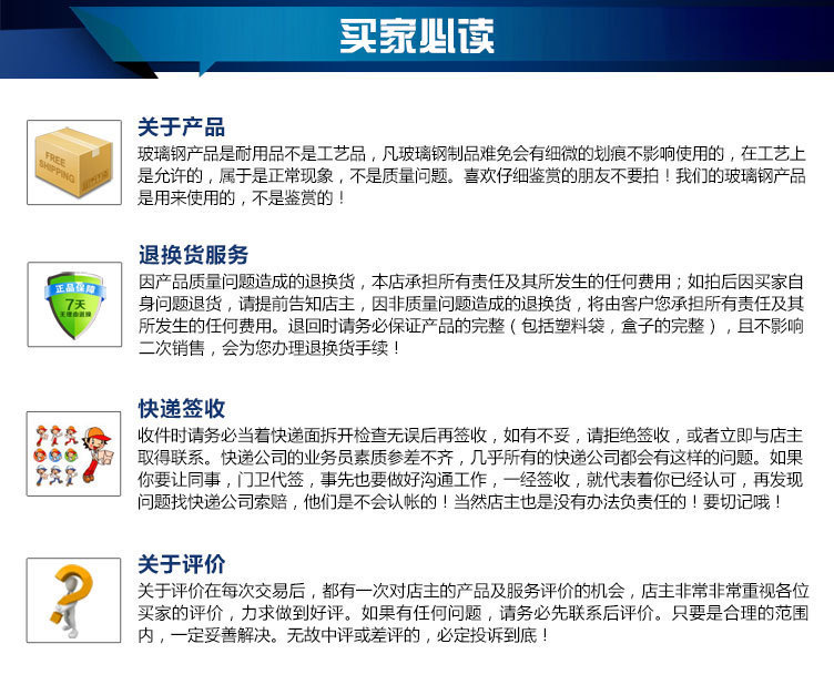 玻璃鋼出水口表麵光亮色彩艷麗,特別是晚上在農田作業車輛燈光的照射下,異常顯眼,從而有效防止瞭作業機器的無意損壞。而且玻璃鋼出水口沒有金屬部件(除緊固螺栓外),所以不受金屬市場價格大起大落的影響,從而保證其價格的穩定性。玻璃鋼沒有回收再利用價值,有效防止瞭丟失。