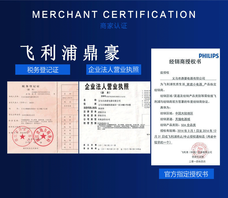 鼎豪電器有限公司是一傢銷售世界品牌飛利浦、吉列、康夫、飛科,及百特、超人、日威、真漢子等暢銷國產品牌的電器有限公司,不僅價格全網最低,品質保證,都是原裝正品,產品種類多且齊全。飛利浦和吉列系列產品不支持退換貨,飛利浦有質量問題可以找當地飛利浦維修中心。