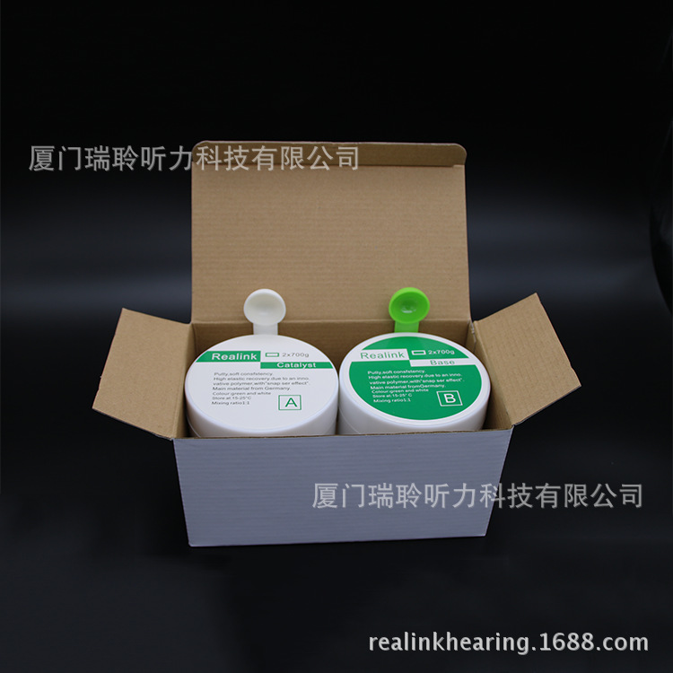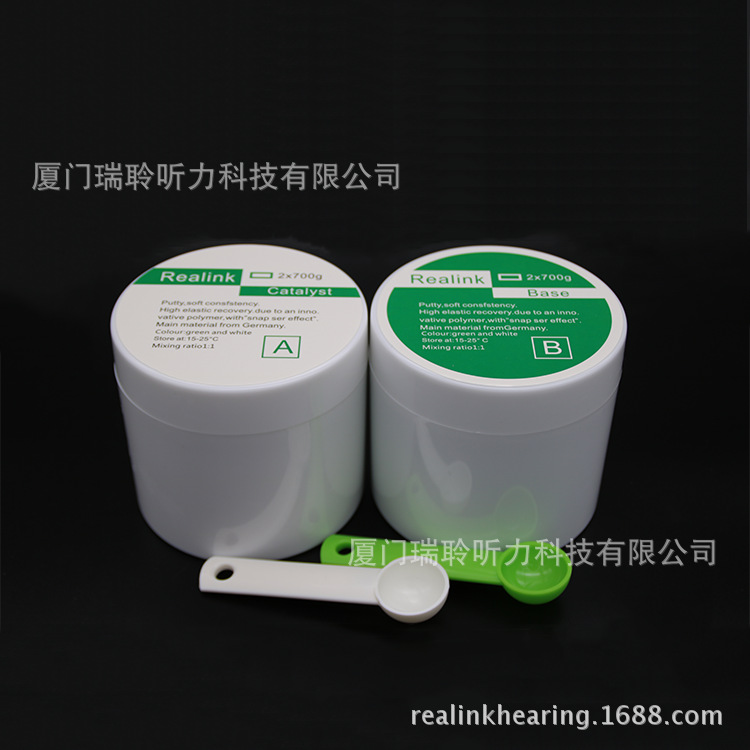 Realink該耳印材料被許多助聽器經銷商、定製耳機製作商作為標準耳印材料,材料細膩柔和,操作平順,混合後製取的耳印形狀穩定,彈性及抗壓性都很好,易於後期的加工操作。