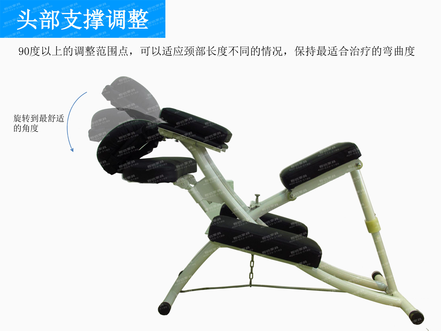 - 頭部支撐調整可在90°以上調整范圍點,可以適應頸部長度不同的情況。