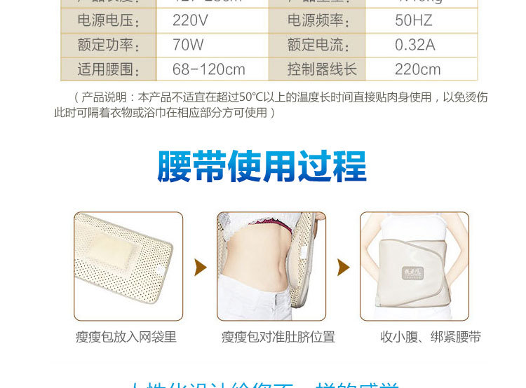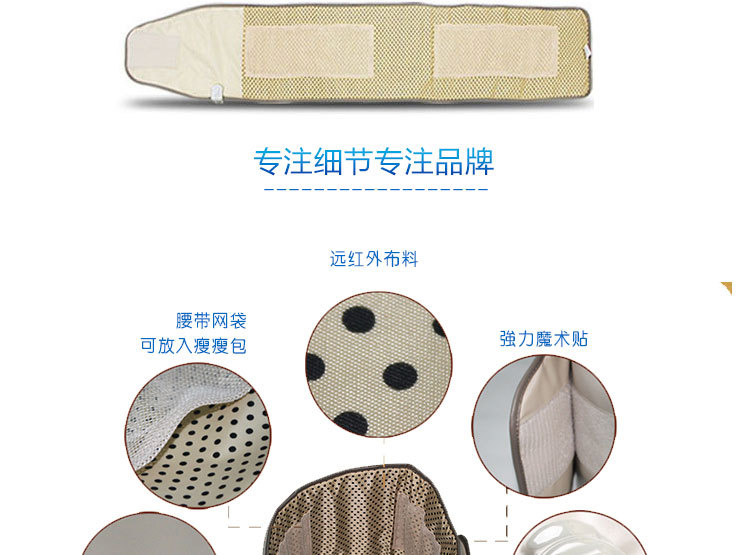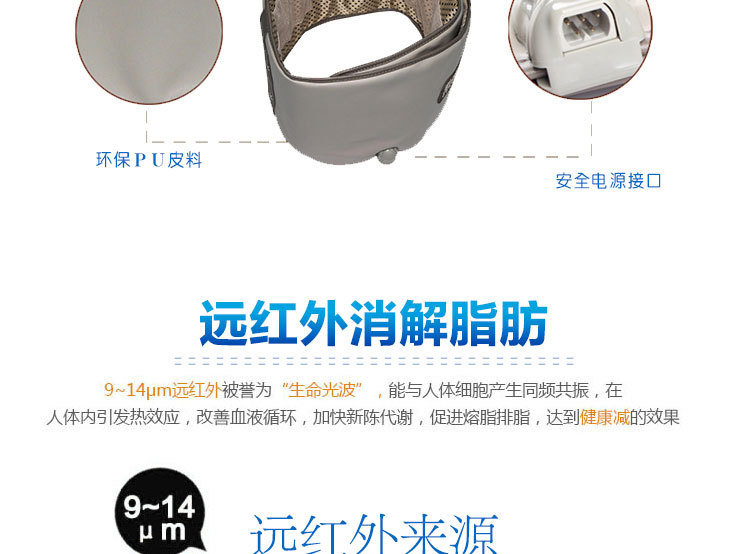 本品是目前市麵上最好的一款中藥遠紅外震脂腰帶:三維立體熱療功能,釋放遠紅外線9~14um使人體同頻共振吸收,三維立體按摩有效穴位,三檔恒溫調節溫度,三種按摩模式選擇,3種定時選擇,對腰椎間盤突出、腰部扭傷輔助復健、宮寒、痛經、胃寒胃痛、護腎、產後恢復、電腦一族腰酸骨痛等具有顯著的效果
