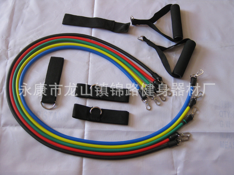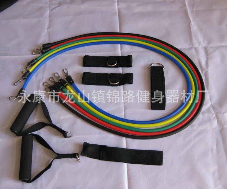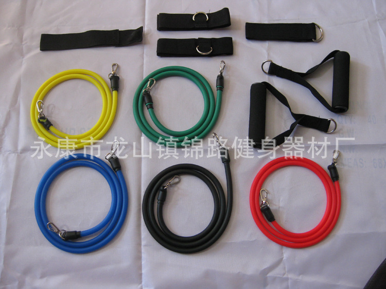 1.健身拉力繩套裝 ,由國產天然乳膠製成的彩色繩帶,具有的優良彈性,有攜帶方便、美觀、實用、低危險性等多種優點。