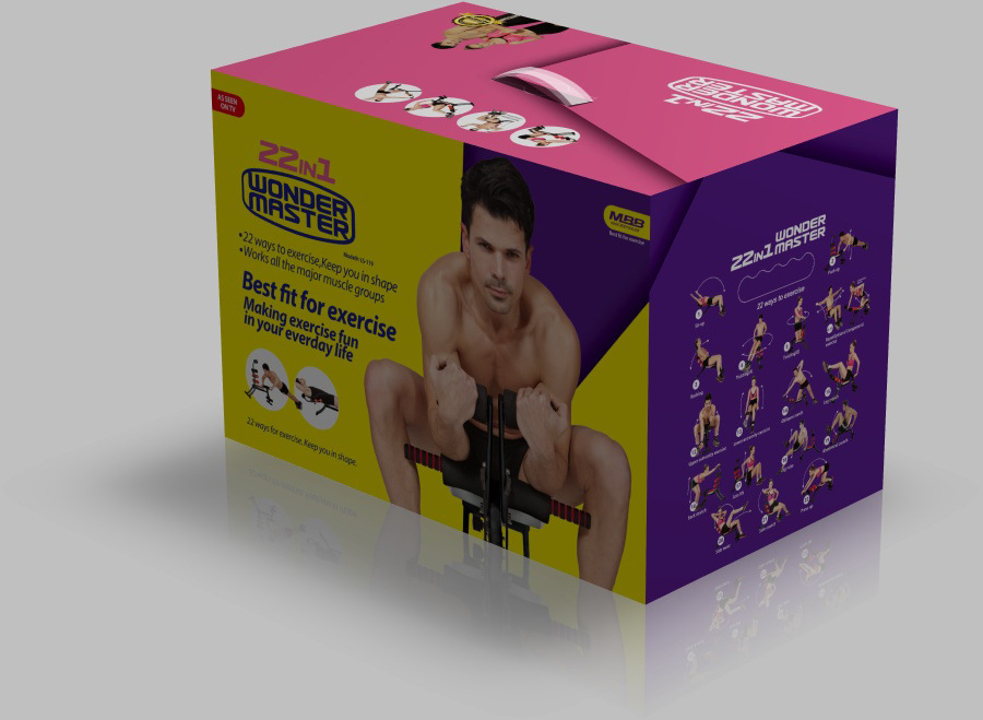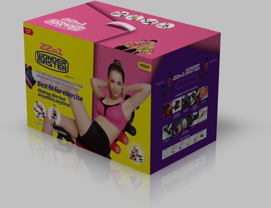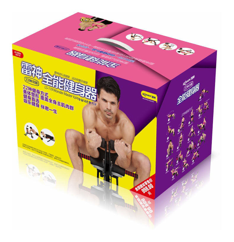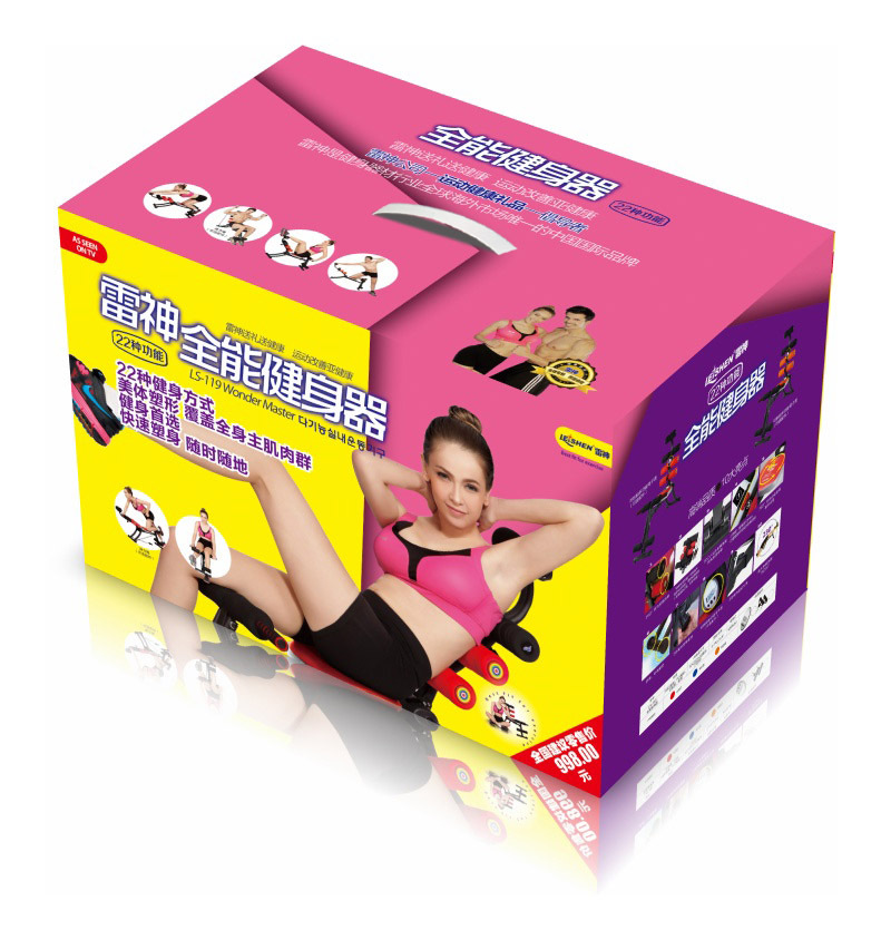 雷神專利其二:扇形折疊技術是雷神公司的全球國際專利,彩盒包裝體積是同行業六合一多功能健身器(six pack care)同類產品的30%,貨櫃裝貨容積是同行業六合一多功能健身器(six pack care)同類產品的3倍,直接節省70%的快遞物流及海運成本。