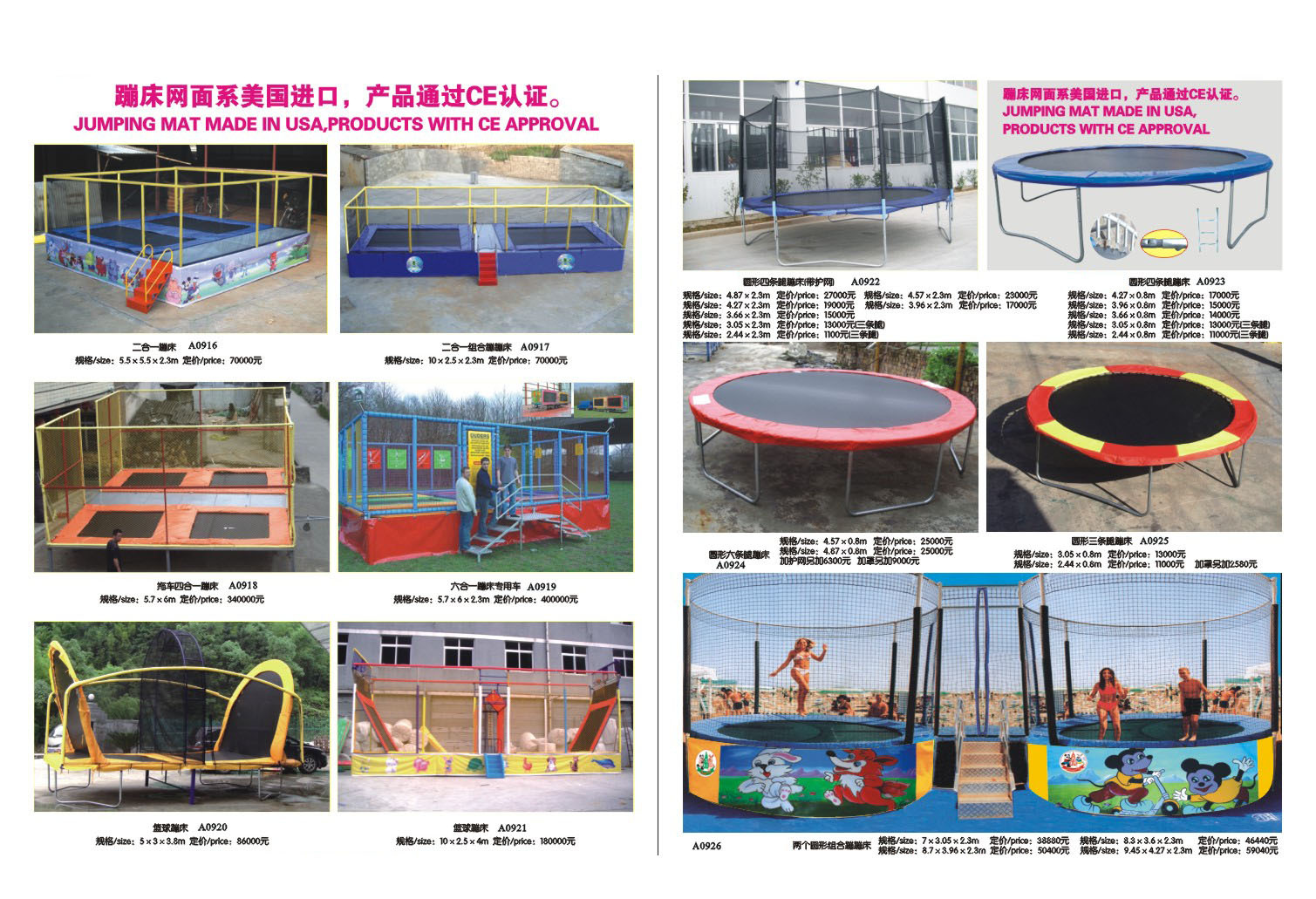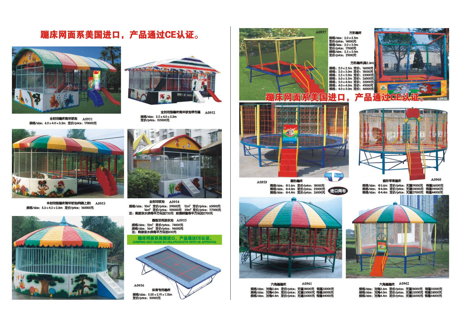 品質:質量都是上層的,所有蹦床材料都是通過質量檢測與環保檢測的,每臺蹦床都是大型工廠出廠的,每臺都要經過歐洲CE安全認證才能出口外國的品質是一模一樣(假一罰萬)
