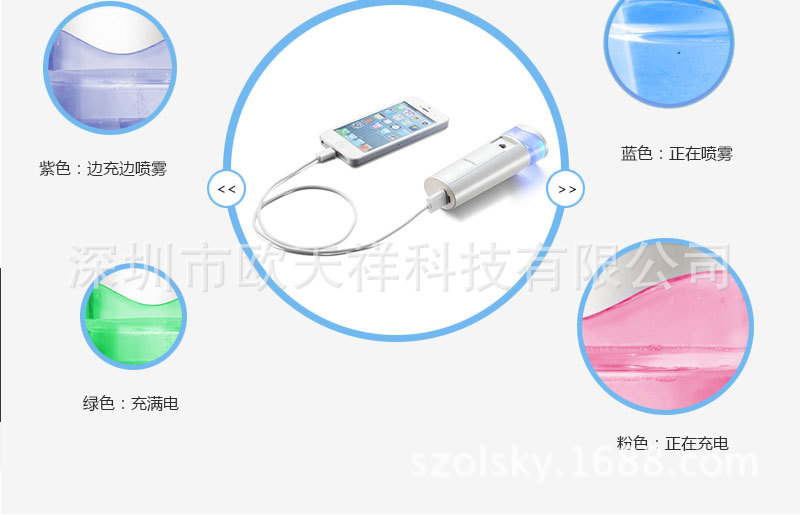 - 主要功效: 保濕補水,給手機充電(可做應急移動電源使用)