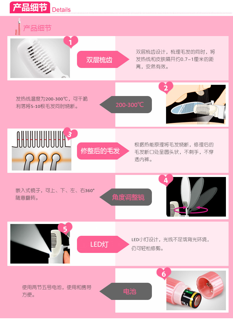 1.熱線祛除毛發,快速修整,毛發不刺手