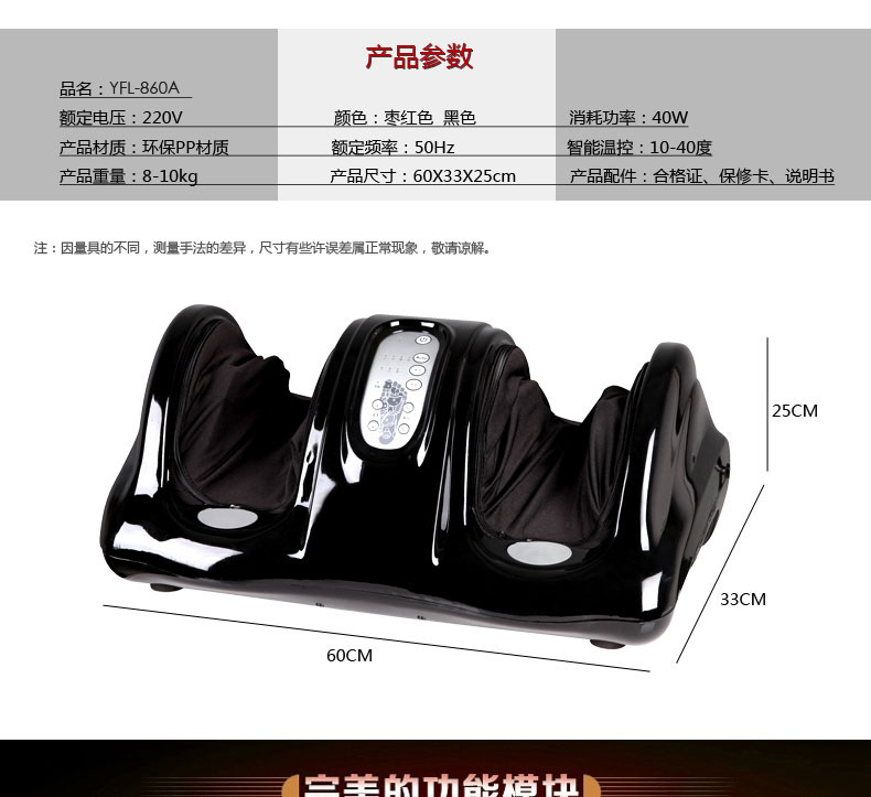 | 顏色 | 黑色 | 按摩部位 | 足部 | 產品類別 | 足療機 |