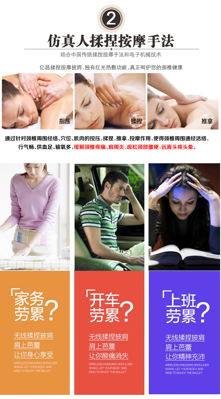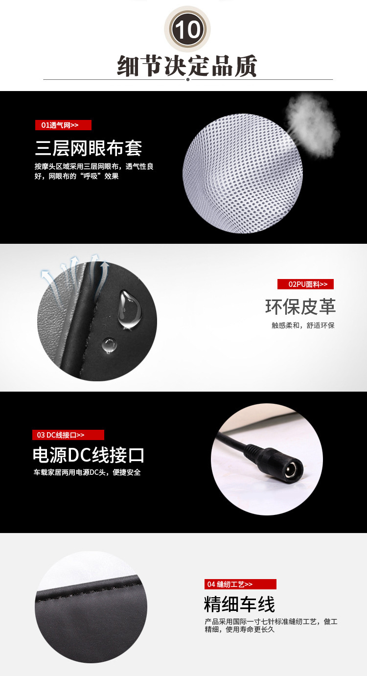 | 按摩原理 | 振動 | 電療方式分類 | 紅外線 | 顏色 | 米色,紅色,黑色 |
