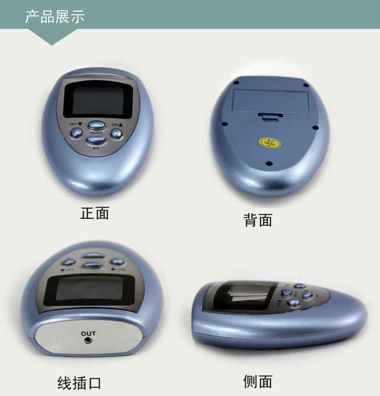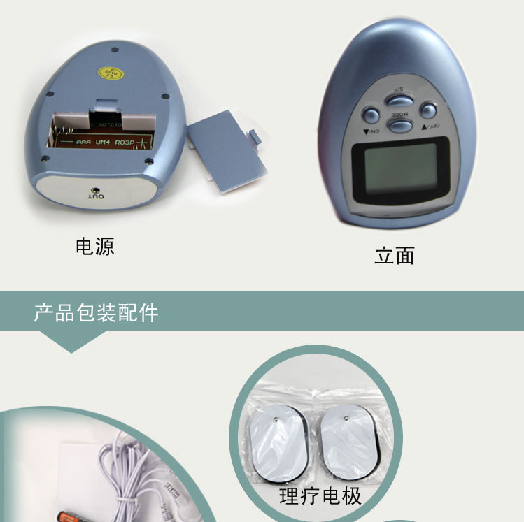 4.具有(推拿)治療功能。此功能主要運用於減肥、瘦身,強身而健身。此功能使您的肌肉得到適當的調節,深層刺激到佘贅,模擬身體控製肌肉的方式,通過脈沖電流作用入肌肉,調速身體肌肉組織基能,使您重現自然曲線美,恢復自信。
