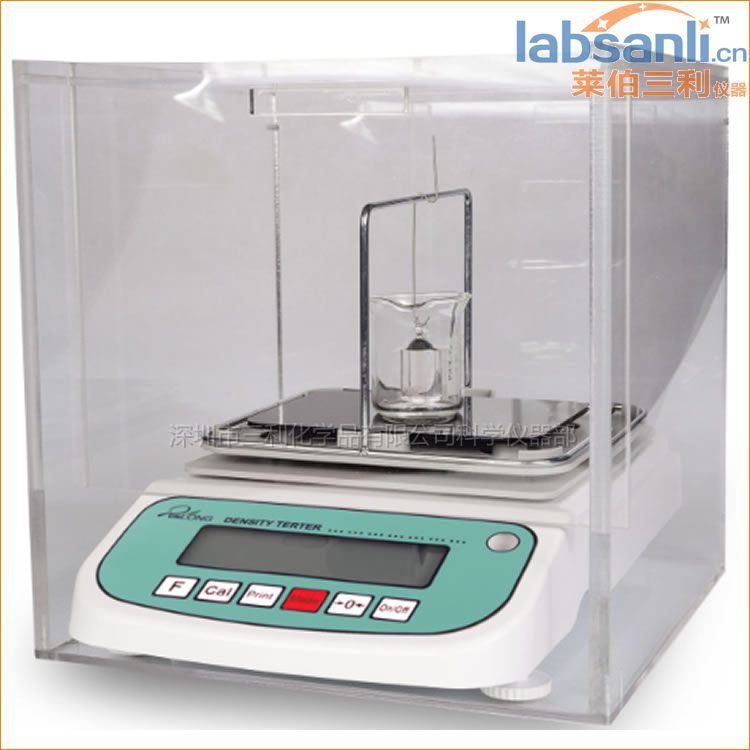①先將玻璃掛起測量空氣中重量,按M鍵記憶. ②將玻璃砝碼完全浸入要測量液體中,按M鍵記憶,直接顯示密度值。