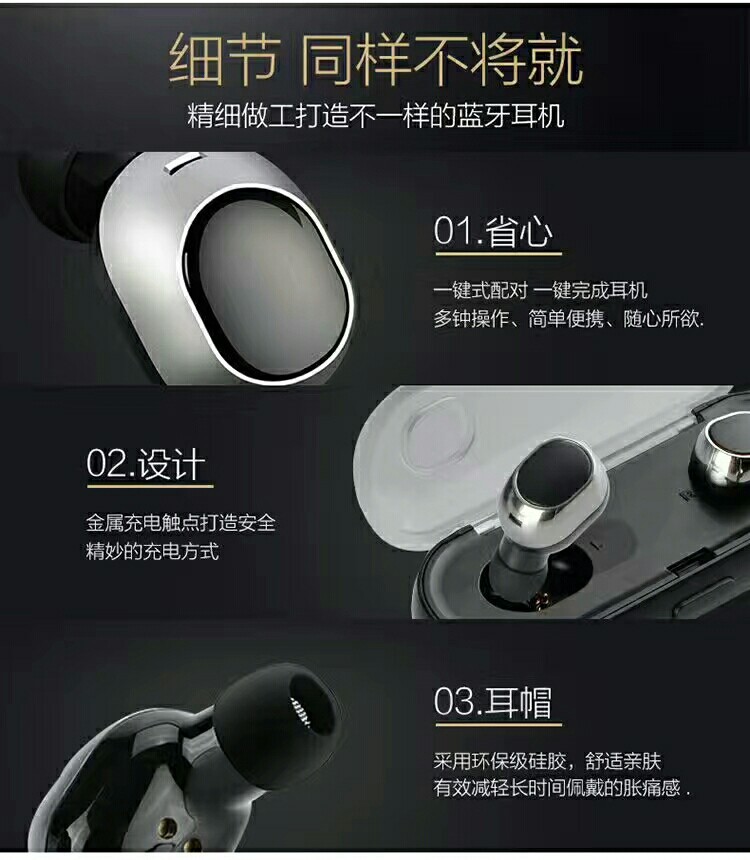 舒適的穿著:人體工學設計,安全健康,沒有麻煩的電線纏繞在你的脖子上。超級迷你耳塞,超輕,只有4 g,開始享受你的無線生活有了這個新的藍牙耳機。