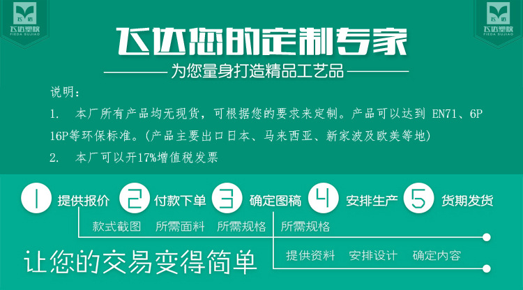 “質量第一、客戶至上”是我們飛達公司的永恆宗旨,“創新發展,追求卓越”是我們不懈追求的奮鬥目標,另外,價格合理,做工精細,也是我們的一大優勢!故此,企業贏得了市場發展與四方美譽,產品暢銷港台及內地市場,兼之遠銷歐美及韓日市場。飛達公司全體員工,真誠期待著與您的攜手合作!共同飛黃騰達!