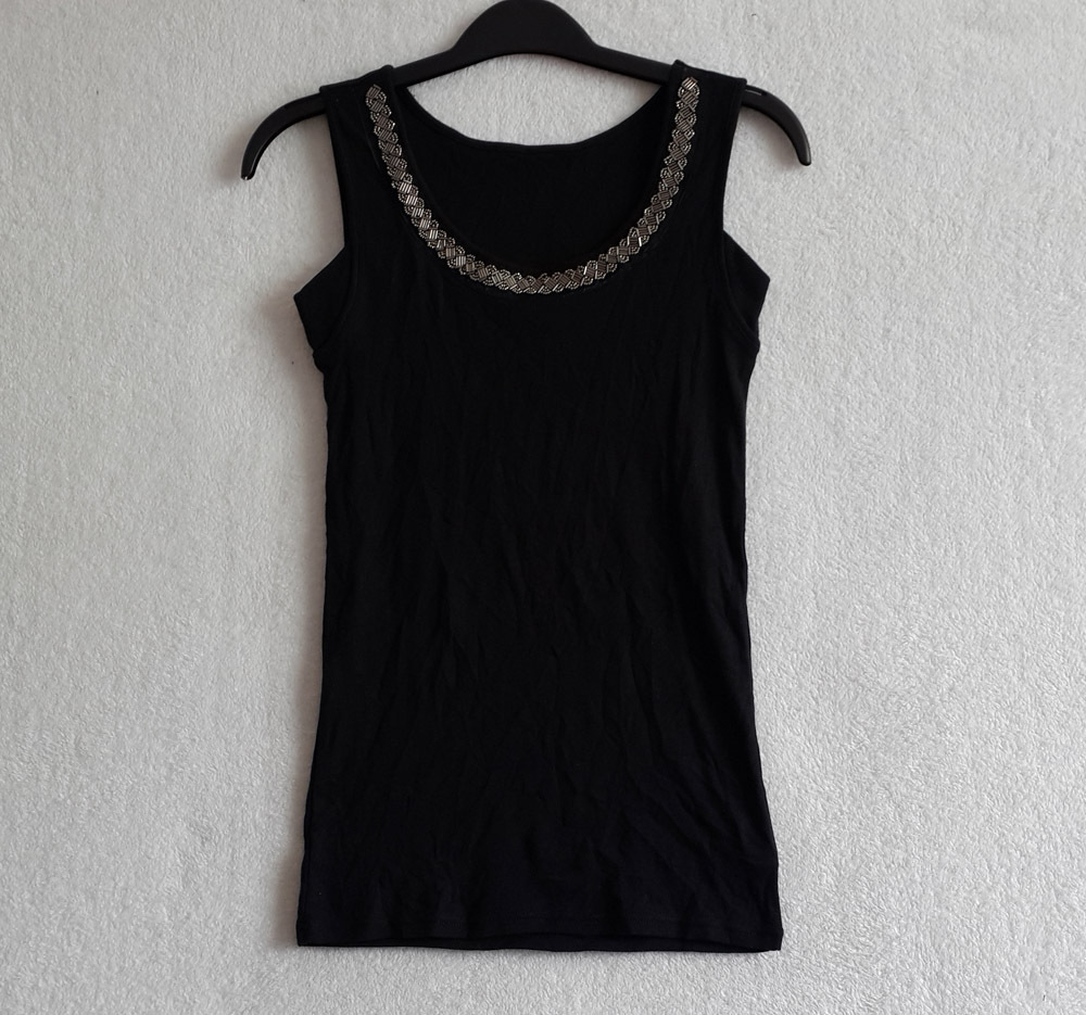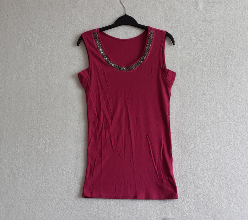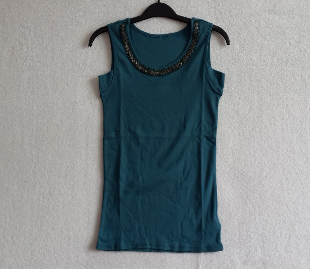 外貿日本原單中長款純棉圓領鑲鑽彈力螺紋女式小背心