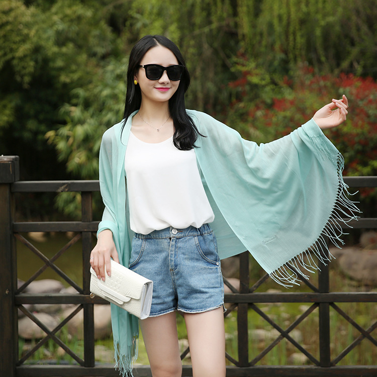 夏天空調對肩頸傷害非常大,除了當做圍巾,還可以披在肩膀上,女生要懂得好好保護自己。