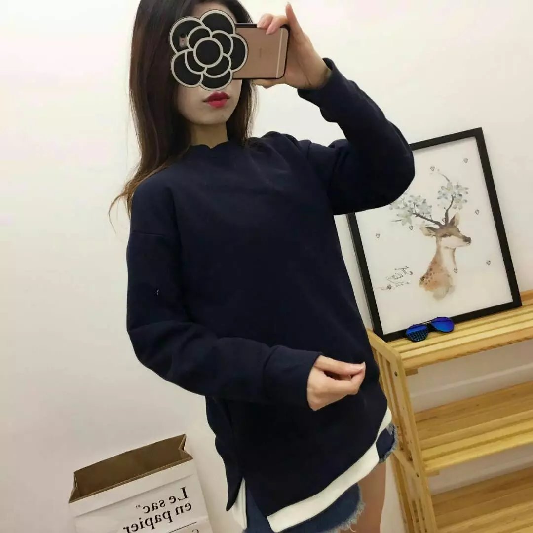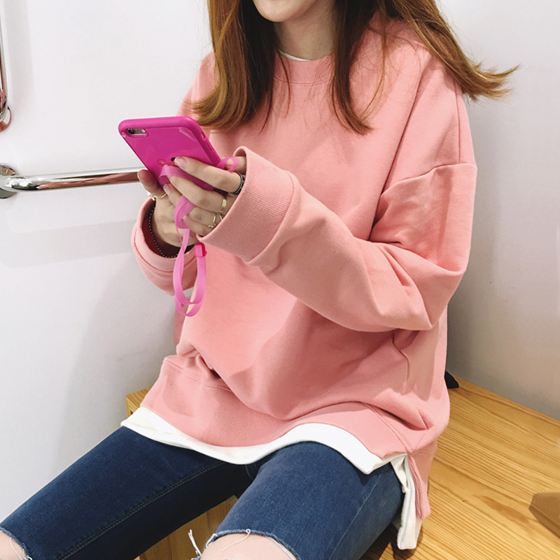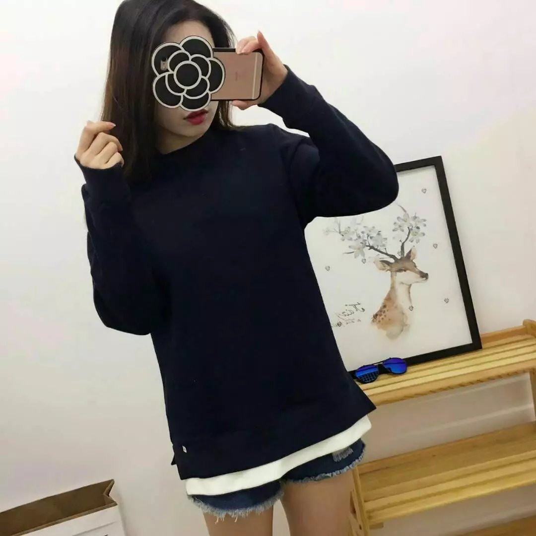 版型非常韓範,秋冬必須有一件假兩件開叉白邊衛衣。