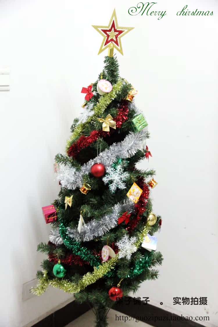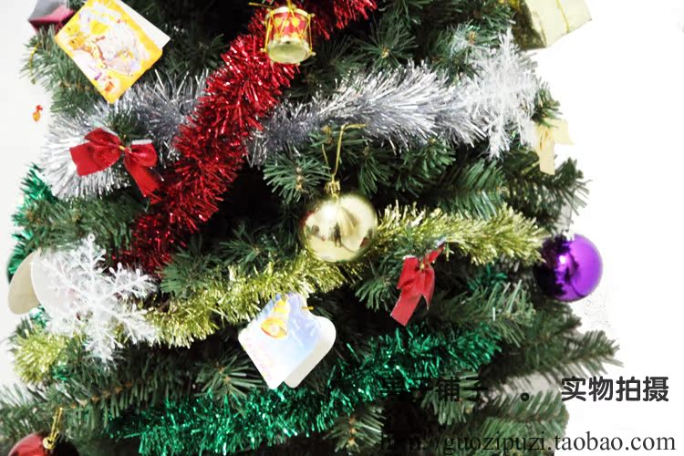 配飾:樹頂星、多色彩條3、許願卡、七彩球、聖誕小鼓、聖誕禮物、金絲蝴蝶結、聖誕雪花片,以下是1.8米的套餐參考圖