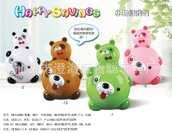 | MLY12002 | 小調皮狗儲錢罐(彩盒) | 120 | 59.3*50*61.5 | 15.4 | 13 | 0 | 0.18 |