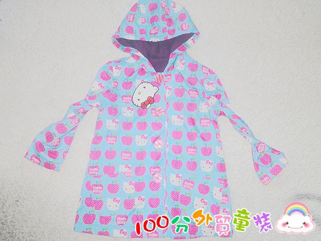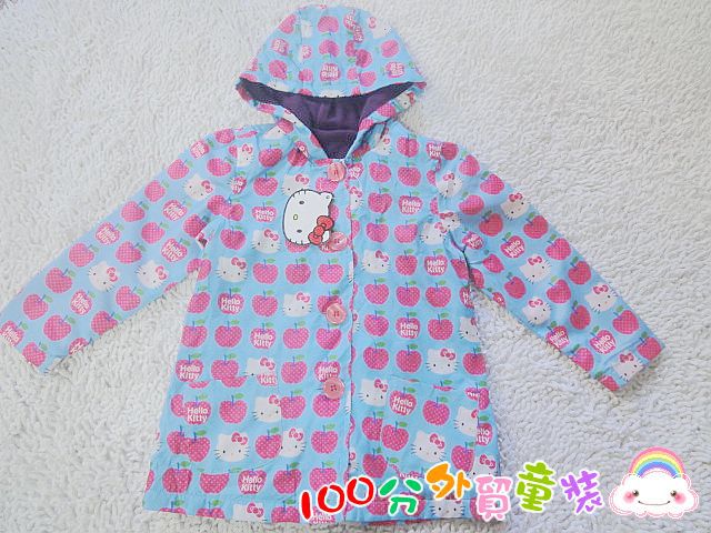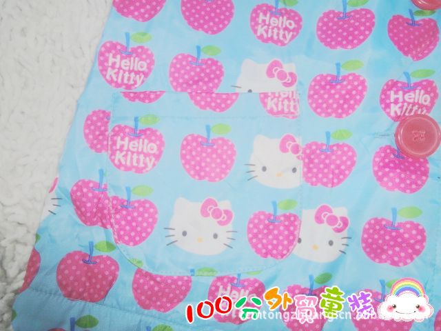 CZ0445 寧波外貿童裝最新HELLO KITTY 加厚外套款,正面是梭織的全身KT 標志的印花圖。非常可愛別致,藍色的底加上紅色的蘋果等非常亮眼。裡子是搖力絨面料,非常柔軟,且保暖實用。帶帽的款式也非常實用哦。如圖單色 4-5 110 和5-6 120 兩個尺碼160件不到。10件起批 33.3元一件。