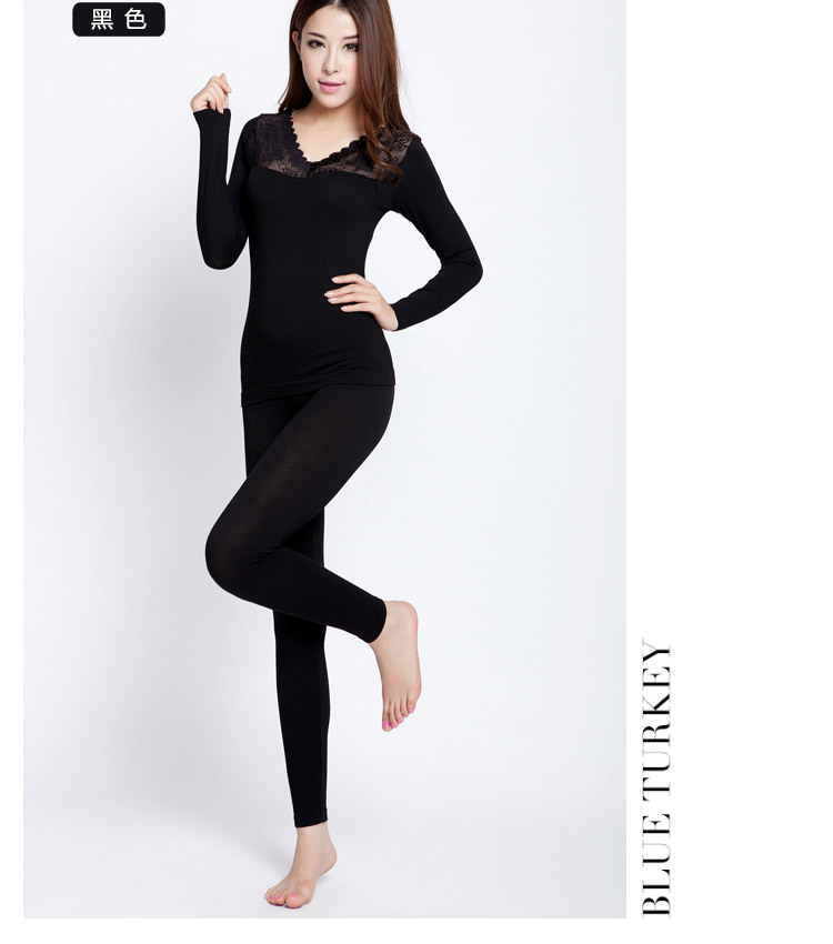 莫代爾蕾絲花邊性感V領秋衣秋褲無縫塑身美體保暖內衣