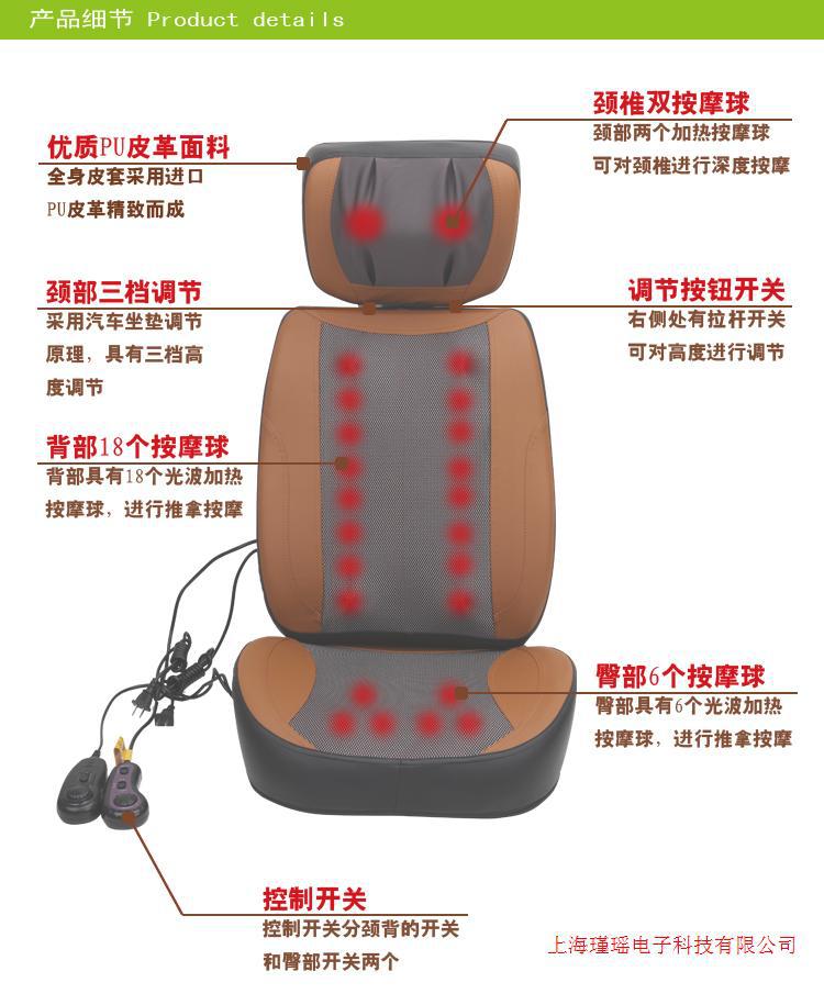 7.柔性環保材料:采用優質仿皮與網佈,手感柔軟,細膩,柔和環保的海綿作為機芯墊,噪音低微,高性能的電機,具有理想的按摩力度,增加使用時的舒適度。