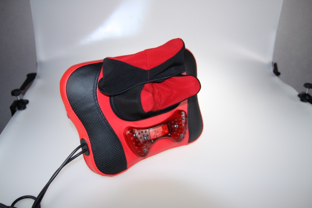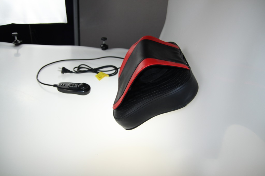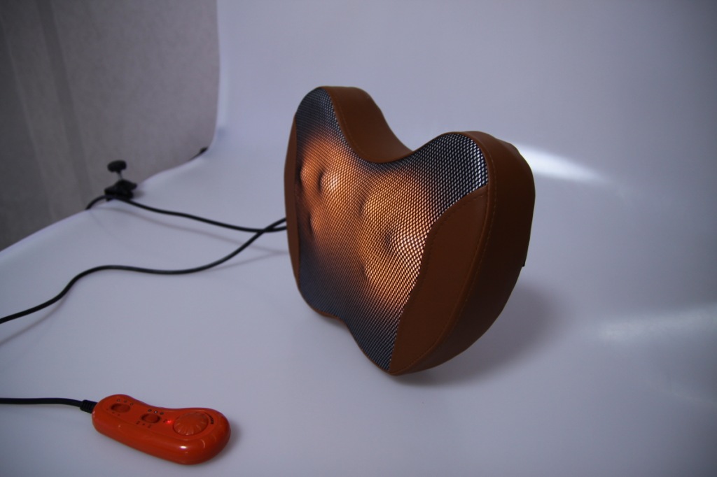 按摩的位置,比如頸部,把按摩枕靠在頸後,開機後既可享受按摩。