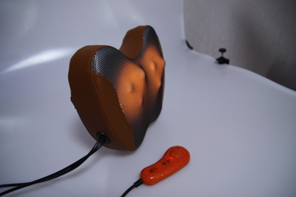 把脖子靠近2個按摩頭中間,可以達到按摩的效果,