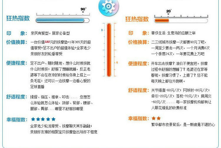 現代都市生活節奏加快,很多人為瞭工作生活,忙碌的生活,加快瞭身體達到負擔,更多人經常熬夜加班,導致身體疲勞,身體各部位器官得不到平衡,因此急需要一款能夠讓身心得到放松的產品,本產品正是能使身體各部位得到放松的一款消除亞健康的產品。上班族職業病、頸椎酸痛、腰椎、肩膀酸痛、眼部疲勞、亞健康、急慢性關節炎、風濕、肩周炎、失眠、鼻炎、神經麻痹、腰肌勞損、月經不調、更年期綜合癥等等