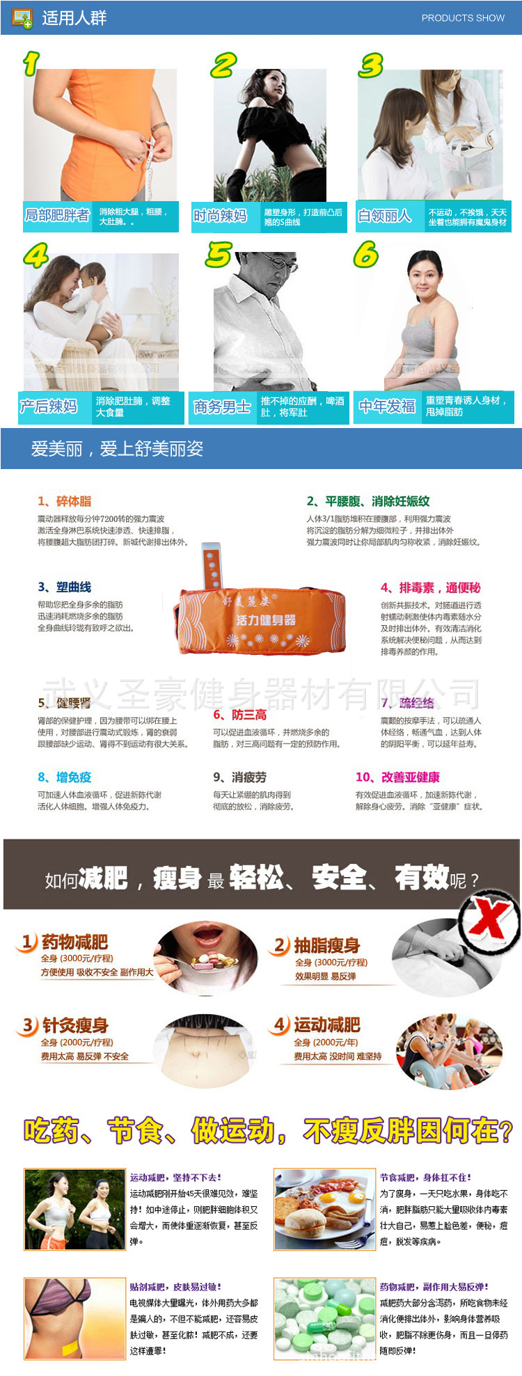 3、活力健身器它是全世界最簡單、方便、快速的賴人減肥瘦身機;它擁有國際綠色環保認證,無副作用,絕不反彈!