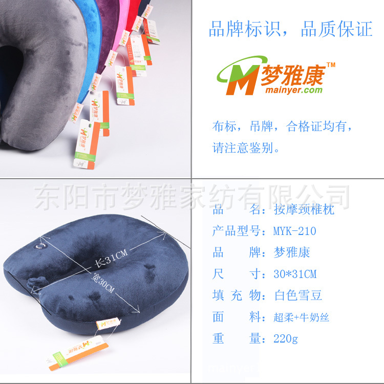 U型頸椎枕已暢銷歐美、日韓發達國傢,現已來到中國。經過改良設計的“夢雅康”休閒頸枕由“夢雅傢紡”公司精心打造。夢雅傢紡07年成立以來,一直從事以泡沫粒子為填充的各類休閒枕、按摩頸枕、抱枕、靠墊的設計與研發,5年來公司已為國外眾多高端品牌貼牌生產,U型枕單款產品年產銷量達100萬隻以上,積累瞭豐富的經驗。“夢雅康”為公司自有品牌,一脈相承瞭出口產品的優秀品質和人性化設計,使國內消費者都能以低價享受出口高檔產品。