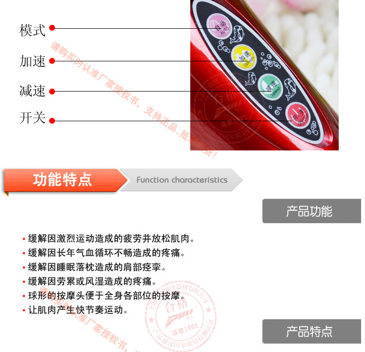 Equipped with adjustable speed function and can switch over the additional massage head