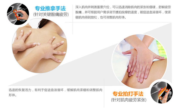 有節奏的捶擊按摩可改善血液循環,放松緊繃的肌肉,改善神經、免疫系統的功能,促進優質睡眠。