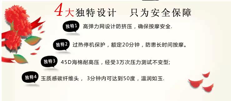 1、睡眠中不要使用,以防止對某一部位的長時間刺激影響健康。