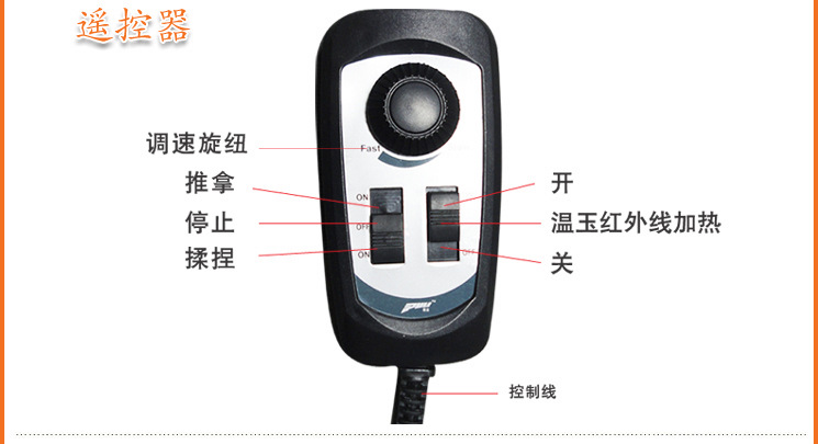 Cabinet controller function but do not small Yu, carefully designed reversing switch, but change knead head around the massage direction, let you more comfortable pleasing. Fluctuation sliding speed switch to adjust, can always change massage speed, satisfy your different time needs.