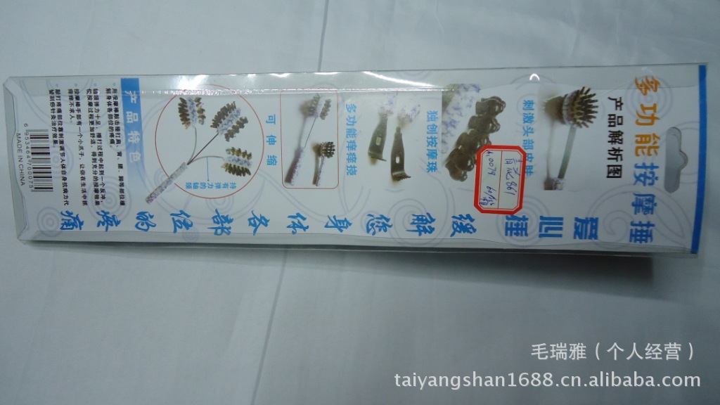 本成品:為手指按摩器。 多功能全身按摩捶,頭梳,不求人一體健身器。全新的設計能更好的與頭皮接觸刺激頭皮上的穴位,促進頭皮的血液循環起到通脈活血,強化新陳代謝的功效,長期使用能有效改善頭痛使你神清氣爽,實現保健和治療目的.