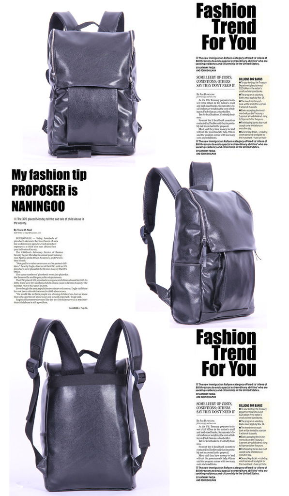 新款PU雙背包時尚休閒雙肩背包拉鏈背包書包男女通用包包