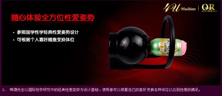 2、 啤酒先生以國際性學研究中的經典性愛姿勢為設計基礎,使用者可以根據自己的喜好變換各種體位以達到性愛的滿足
