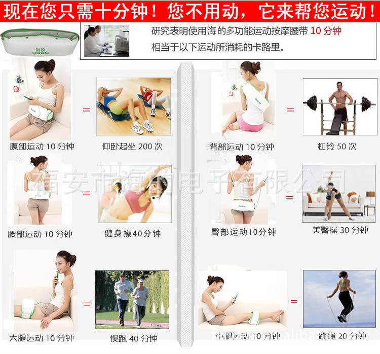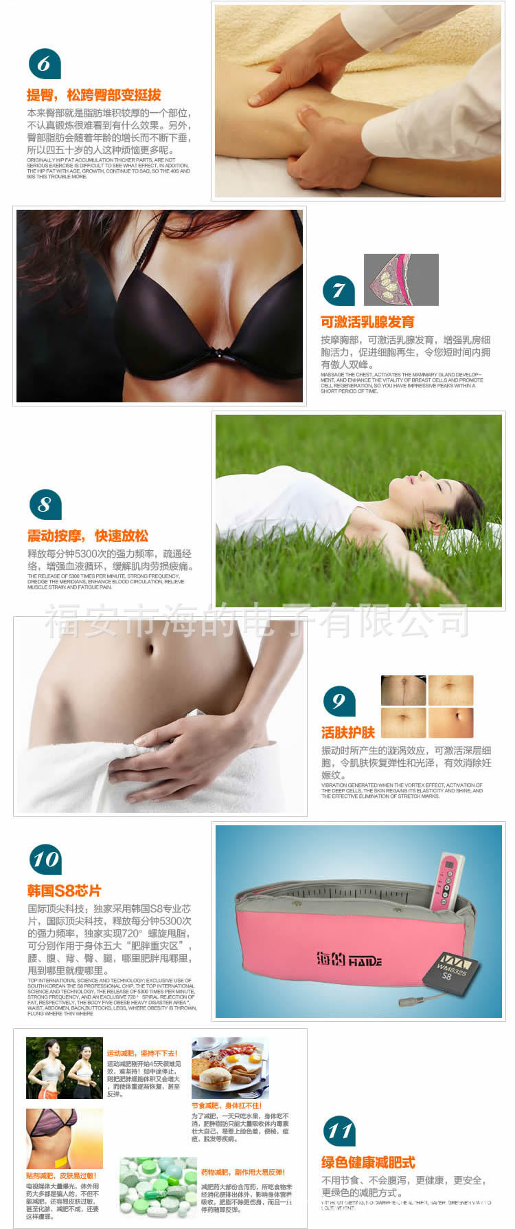 福安市海的電子有限公司是按摩器、瘦身腰帶、捶捶背等產品專業生產加工的公司,擁有完整、科學的質量管理體系。福安市海的電子有限公司的誠信、實力和產品質量獲得業界的認可。歡迎各界朋友蒞臨參觀、指導和業務洽談。