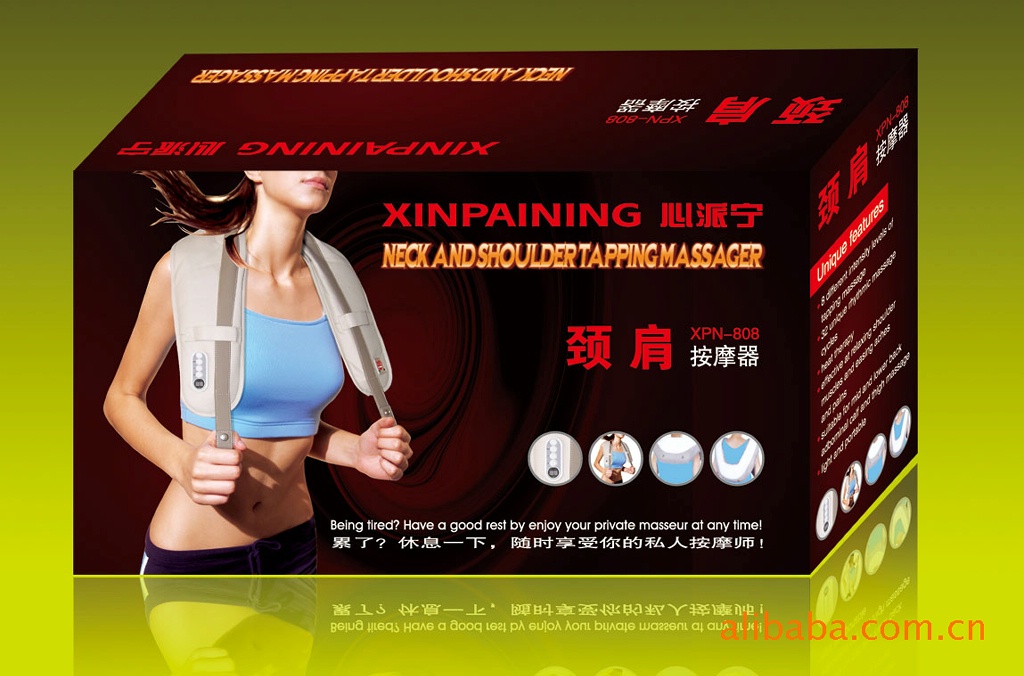 2、該產品有別於一般的手握式按摩器,按摩時不需隨時手握,可提供身體多個部位的按摩,隻要將頸肩樂包覆環繞於想按摩的部位,再加以松緊,即可享受提振精神,活動無限的按摩。