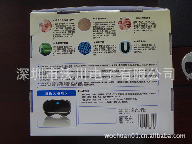 產品概述:氣囊揉壓、紅外熱敷、震動按摩,緩解眼部疲勞,護腦醒目。