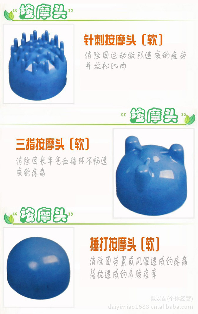 本產品外形設計為大棒捶型,雙頭按摩,力度更大,按摩部位更多,可充分按摩頸椎、肩膀等部位;另配6個按摩頭,可針對腳底穴位、腰部及腿部等部位進行重點按摩。 額定電壓:AC220V