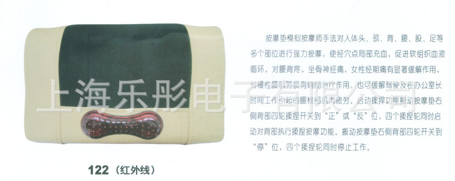 中醫認為“痛則不通,通則不痛”,本產品的功能就是針對頸、腰部的推拿、揉捏,通過紅外線的熱療,溫升輻射,藥磁電療按摩部位產生效應,使經絡氣血暢通,使鐵元素循環有序,調和陰陽氣血加快損傷細胞的再生,從而達到除祛疾病,緩解疼痛和保健強身之目的。