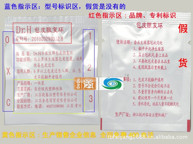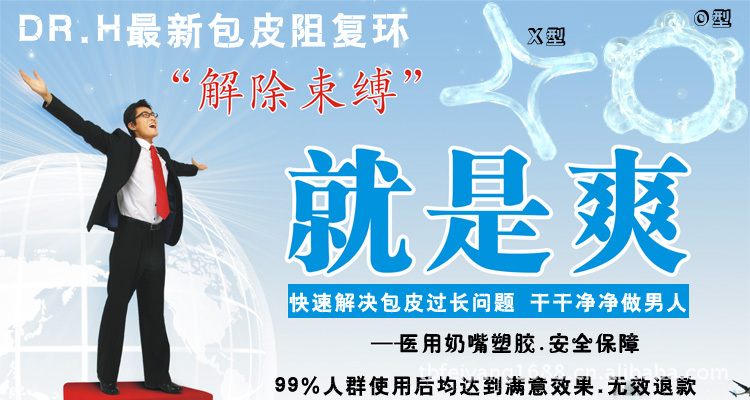 作用和原理:包皮過長:男子非勃起狀態包皮部分超過冠狀溝即為過長;本品僅適用於包皮過長,不可用於包莖和嵌頓包莖!!!使包皮始終處於冠狀溝後面,穩定皮膚記憶功能,得以使包皮保不會蓋住冠狀溝,同時,裸露的龜頭受到內褲的摩擦,刺激生殖器自身血液循環,促進生長,(男子可以發育到35歲以上)。使包皮相對變短。環的使用,徹底消除包皮過長的所有癥狀,立即使用,立即顯效。最終使得包皮出現退縮變化而達到滿意的效果,不必開刀或進行其它去除術。配合德國雀樂可以在短短幾個月達到治療包皮過長的效果 本新改良包皮阻復環的是采用醫用食品級無毒矽膠(可制作奶嘴和整形填充物),安全無刺激,長期佩戴不會刺激嬌嫩私處皮膚,幹燥的私處環境使細菌沒有滋生條件,避免各種尷尬狀況。本產品可長時間連續使用至皺縮效果滿意,間斷使用影響也不大,達到滿意的皺縮時間因年齡等因素不同而異。實踐證明,99%使用人群在連續使用五個月至一年內達到滿意效果。年紀較大的包皮過長者可長期不間斷佩戴,包莖患者可用德國雀樂使包皮翻開後佩戴,同樣能達到滿意效果