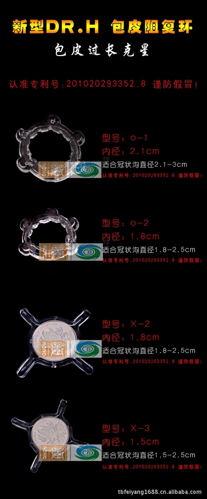 本品根據已有專利經過大量體驗改良的,由主體圓形及外緣突出,內緣有通氣溝槽,環內緣有一定的錐度,環本省也有一定的弧度適應男性生殖器的形狀。以使佩戴不易脫落,(經掌櫃親自試戴,本品是不錯的!卡的牢又不緊,平時甩尿尿也不影響)環本身有一定的強度,可以拉伸長度十倍以上而不斷,柔軟接近皮膚,以用食品級(醫療級)軟膠,矽膠彈性材料,通過模具一次註塑成型,並制成大小不同的規格。適應陰莖不同大小的需要。成品經安全檢測並包裝上市,卡在陰莖冠狀溝處,以環本身向外突出部分阻擋包皮包住龜頭部分,阻止包皮上翻後的復位。保持男性生殖器的幹爽環境。