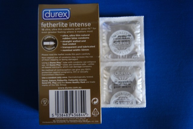 特點:杜蕾斯(Durex)耐力裝(Performax)套身內外都有潤滑劑,套套內部白色膏體潤滑劑中含有5%Benzocaine的杜蕾斯專利延時持久成分,在體溫的作用下自動發揮作用,可以延緩男性性高潮,延長快感時間。是杜蕾斯中最暢銷的產品之一。厚度為0.06,潤滑劑中不含殺精劑。